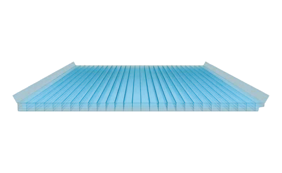 - El policarbonato para panel esta compuesto por numerosas celdas que facilitan la entrada de luz e impiden que gran parte del calor exterior entre en el interior, adaptándose a la perfección al panel sándwich para su fácil montaje.